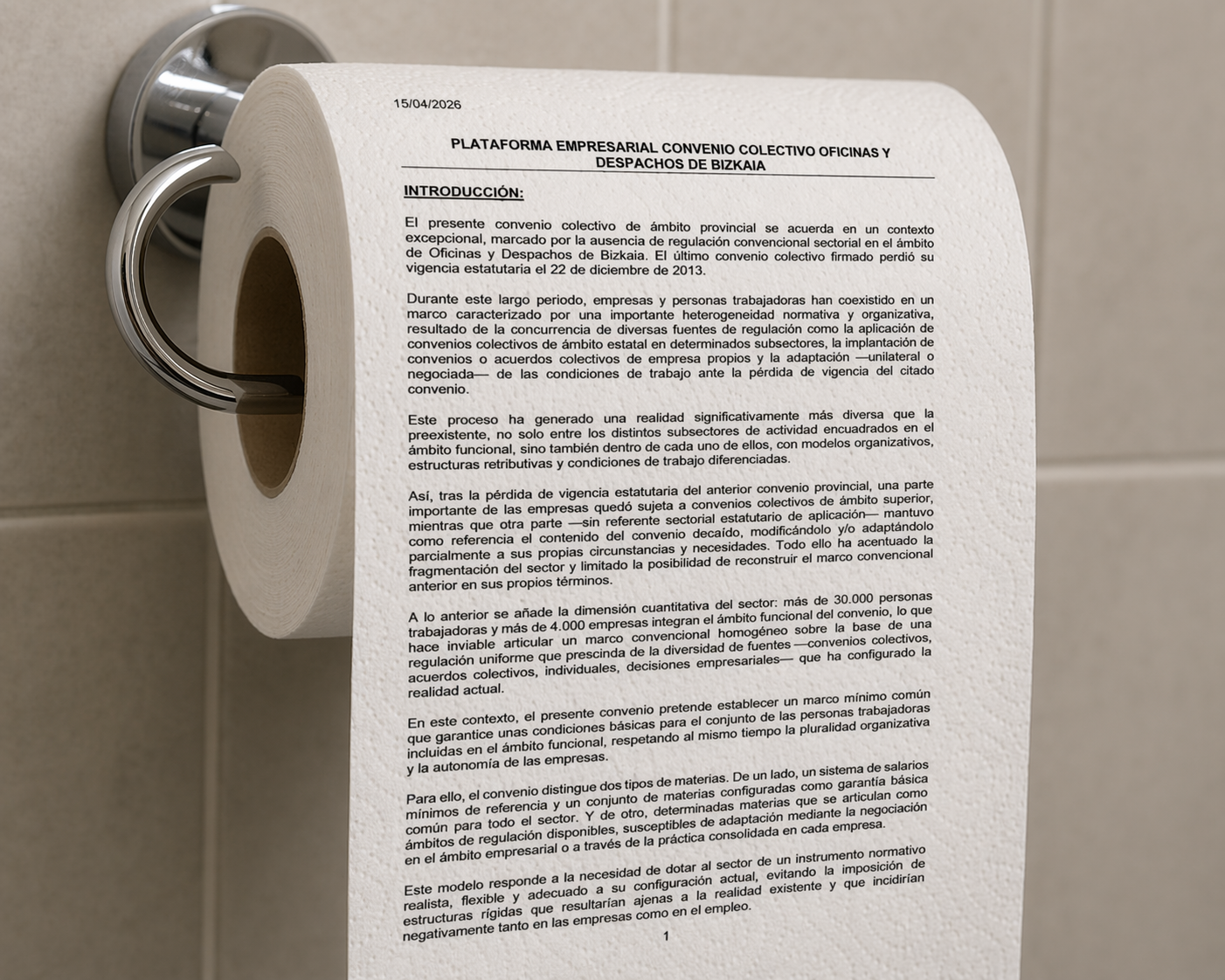 La patronal Cebek no quiere recuperar el convenio y lo ha demostrado ofreciendo un convenio marco de mínimos donde elimina todos los artículos del actual convenio, incluyendo tablas salariales, para dejar solo estos apartados (resumen):